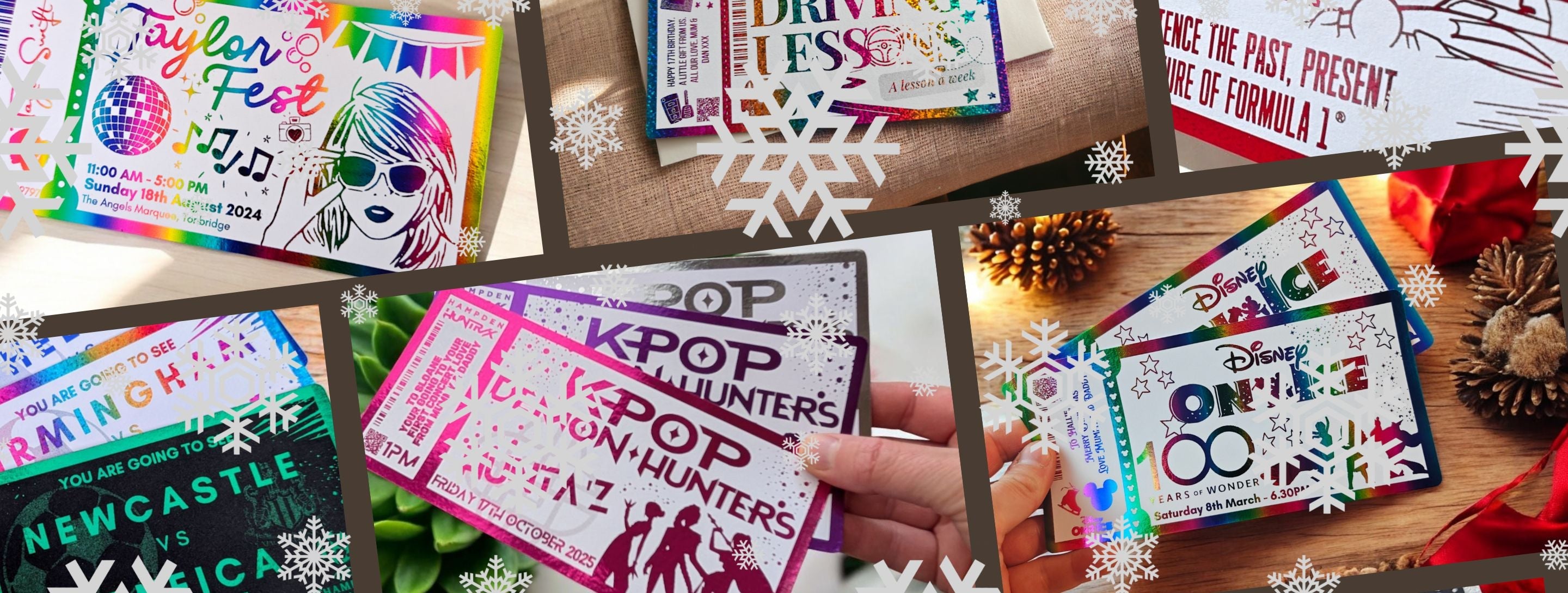 Make your loved one feel extra special with a personalised foil ticket from our online gift store. We design each ticket to your specifications, making it a one-of-a-kind keepsake. Perfect for birthdays, anniversaries, or any special occasion, our foil tickets are sure to impress.