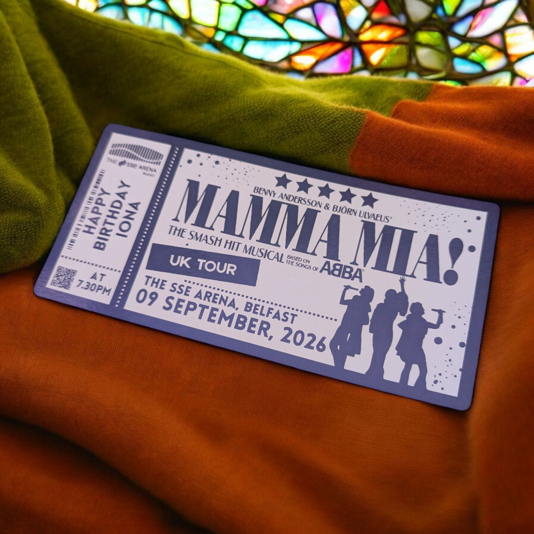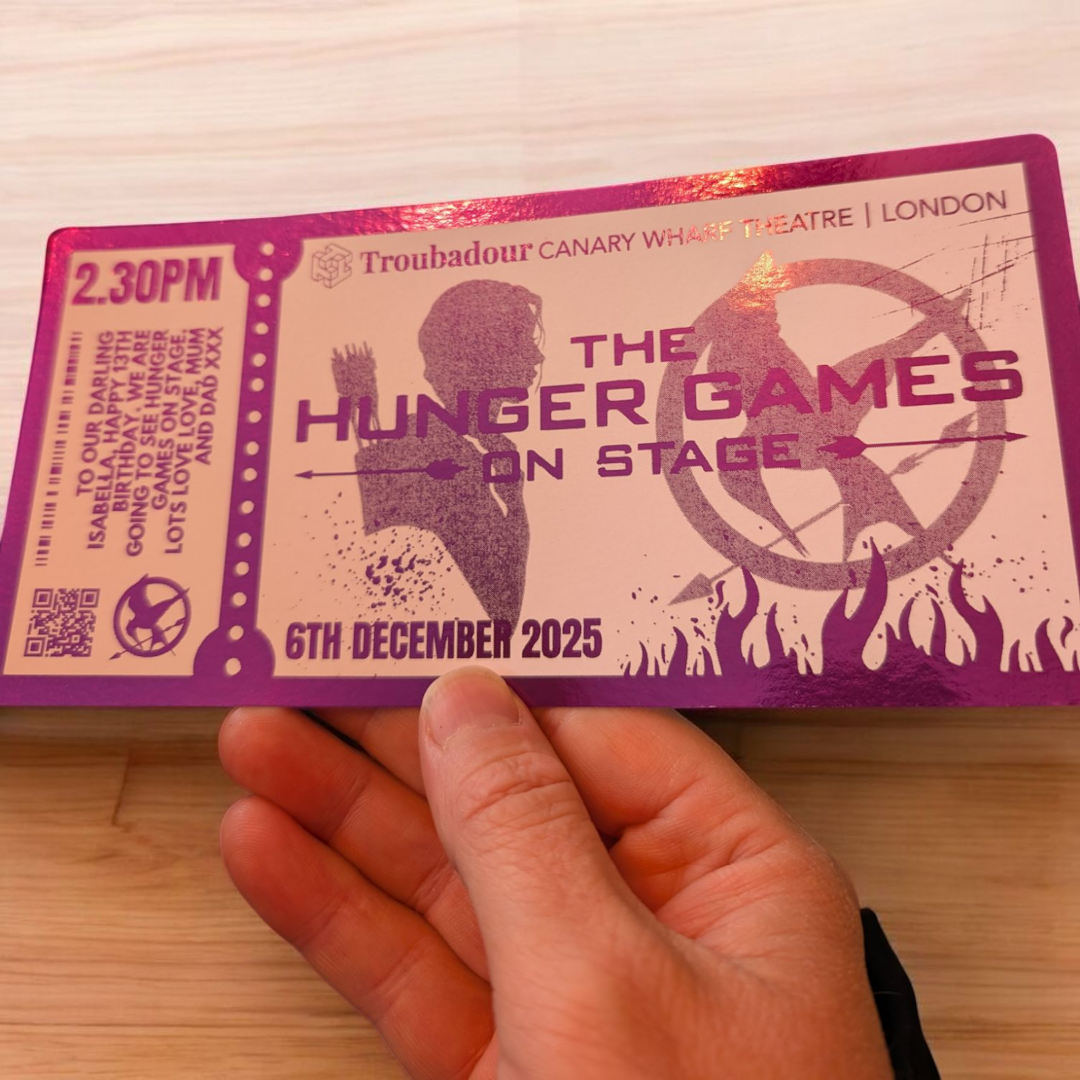 🎭 Surprise a theatre lover with a touch of magic! This personalised foil ticket is the perfect way to announce a trip to see Matilda the Musicallive on stage – a heartwarming, hilarious show filled with unforgettable songs and a dash of rebellion.